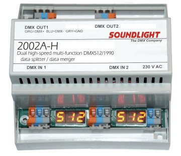 DMX MERGER 2002A-H jetzt mit vielen neuen Funktionen Mit einer Vielzahl neuer, zusätzlicher Funktionen kommt ab sofort unser DIN-Hutschienen-Merger 2002A-H. Sie können jetzt auch Vorrangschaltungen, Ausfallschaltungen und eine signalgesteuerte Line-Umschaltung realisieren, einen DMX Masterkanal einbauen u.a.m. Mehr im Manual der Version 2.0, das Sie von unserer Manuals-Website herunterladen können. Wussten Sie übrigens? Das ZDF hat unseren Merger 2002A-H als Standardprodukt spezifiziert. In einer Sonderversion wird das Modell für die Mainzelmännchen gefertigt, und sorgt so für die Erfüllung des Slogans: "Mit dem Zweiten sieht man besser!". |