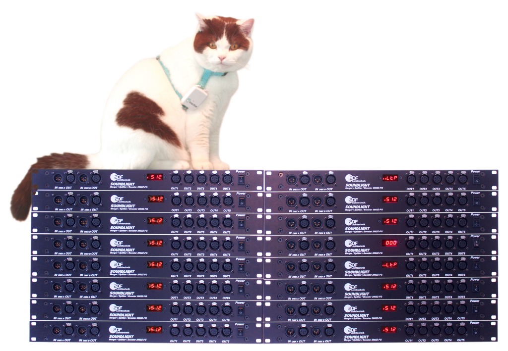 Power für's Zweite Ohne Licht läuft im Fernsehen ja nichts. Damit sie immer bestens im Bilde sind, verfügt das ZDF über eine umfangreiche Lichttechnik powered by SOUNDLIGHT, denn in jedem ZDF-Lichtwagen findet sich nunmehr ein sog. Merger-Booster 2002Z-FG, der nach ZDF-Anforderungen entwickelt und gebaut wird. Damit wird bei Ausfall eines Steuerpultes ein verzögerungsfreier Übergang auf Havariesysteme bei gleichzeitiger Letztwerthaltung gewährleistet - kurz: auch in einem solchen Fall steht niemand im Dunkeln. Viel Leistung für wenig Mäuse - da staunt selbst unser Firmenkater Zampano. ZDF Lichttechnik - Technische Umsetzung und Betreuung: Arri Arnold & Richter, Berlin |