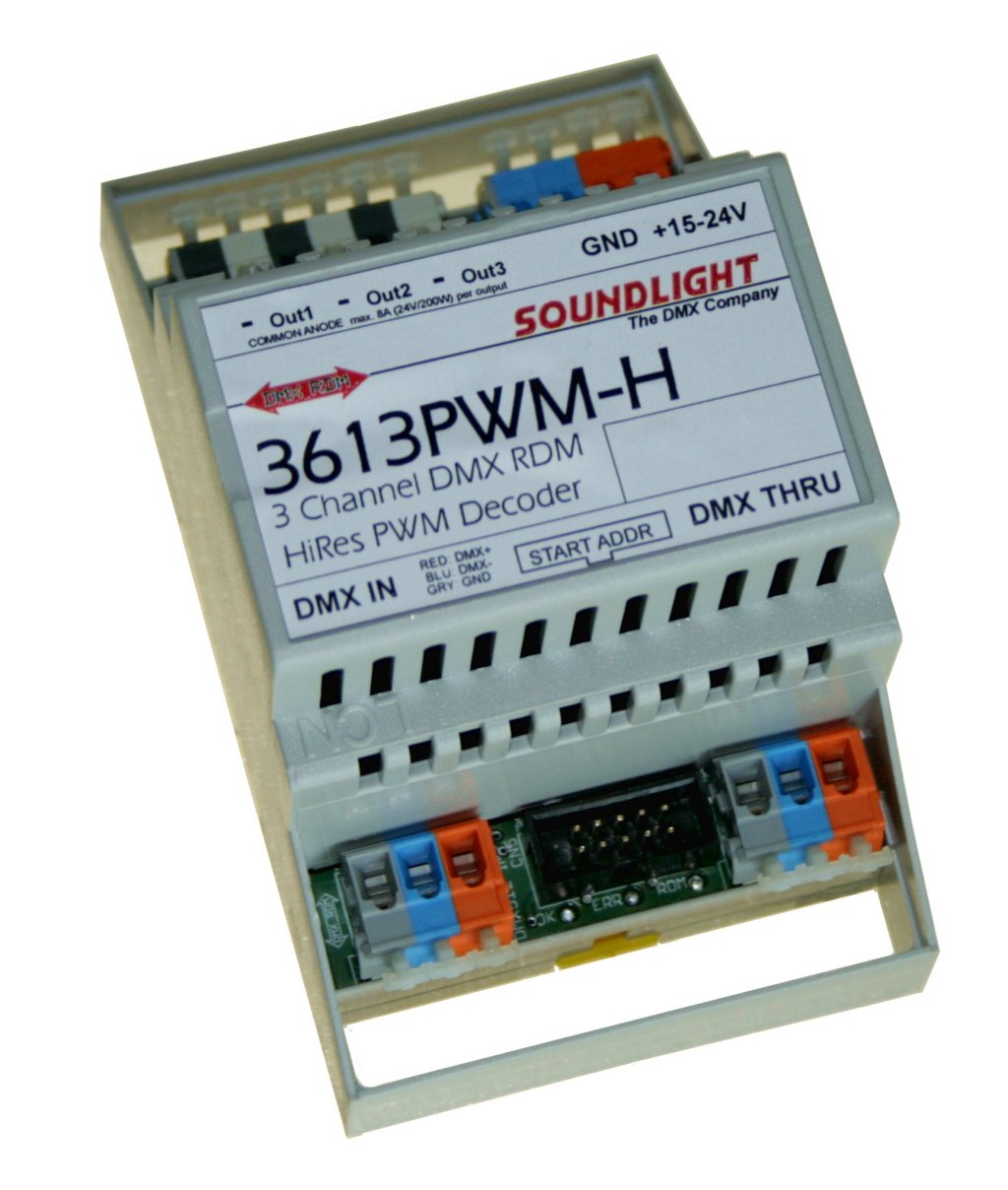 LED-DRIVER 9006A-H RDM ab sofort verfügbar Optimal zur Ansteuerung von Power-LEDs ist der neue LED-Driver 9006A geeignet. Das 6-Kanal Modul treibt 700mA LEDs und verfügt über eine logarithmische Kennlinie, die der von elektronischen Vorschaltgeräten von Leuchtstofflampen entspricht. Der Vorteil: mit der 9006A ist es daher möglich, Farblichtröhren und farbige LED-Ausleuchtung im Verbund zu betreiben, ohne daß es beim Faden namhafte Farbverfälschungen gibt, so wie das bei Standard-LED-Scheinwerfern oftmals der Fall ist. Zudem ist die 9006A DMX RDM kompatibel und kann über die DMX Leitung fernadministriert werden. Das ist -gerade für Anwendungen im Architekturlichtbereich - ein grosser Vorteil. | |||||