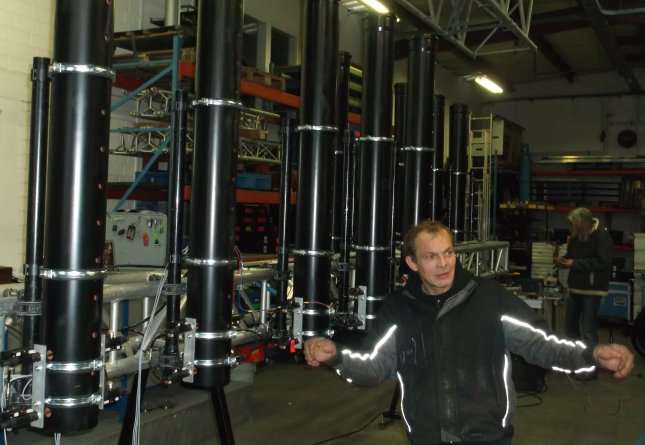 DMX Relais auch monostabil verfügbar Interessenten können unsere de facto zum Industriestandard avancierten Relaiskarten 3206R-EP nun auch mit monostabiler (impuls-) Funktion bekommen. Der Clou: die Schließzeit ist anwenderseitig einprogrammierbar. Nebenstehend zeigen wir Ihnen keine Raketensilos, sondern eine pneumatische Ballwurfanlage, die von der Fa. SAMT & EISEN für einen Event speziell designed und angefertigt wurde. Die Ansteuerung übernehmen SOUNDLIGHT 3206R-EP und sparen damit eine sonst erforderliche komplexe sequentielle Logik. | ![]() |
